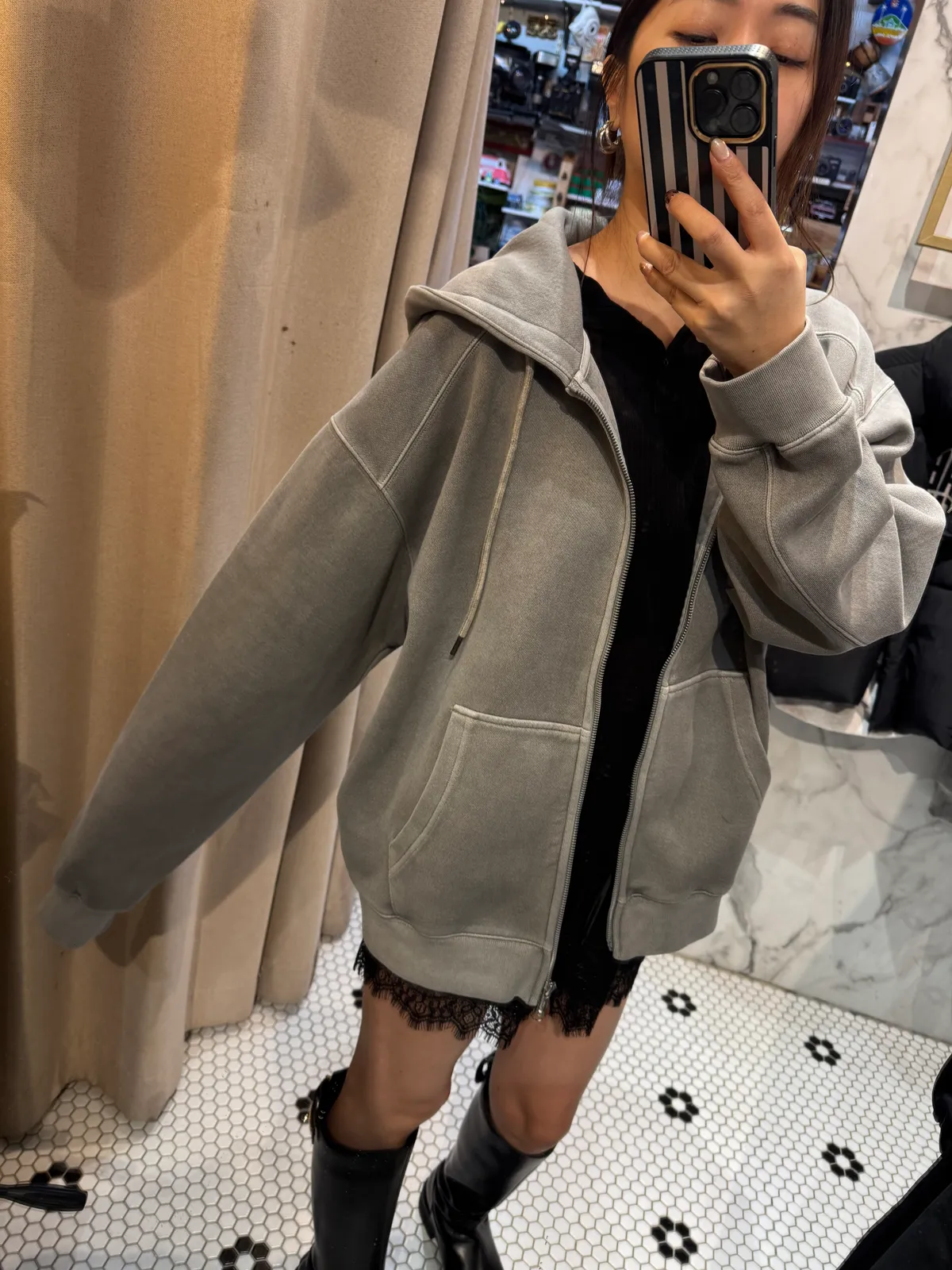 A21質感水洗車線連帽外套