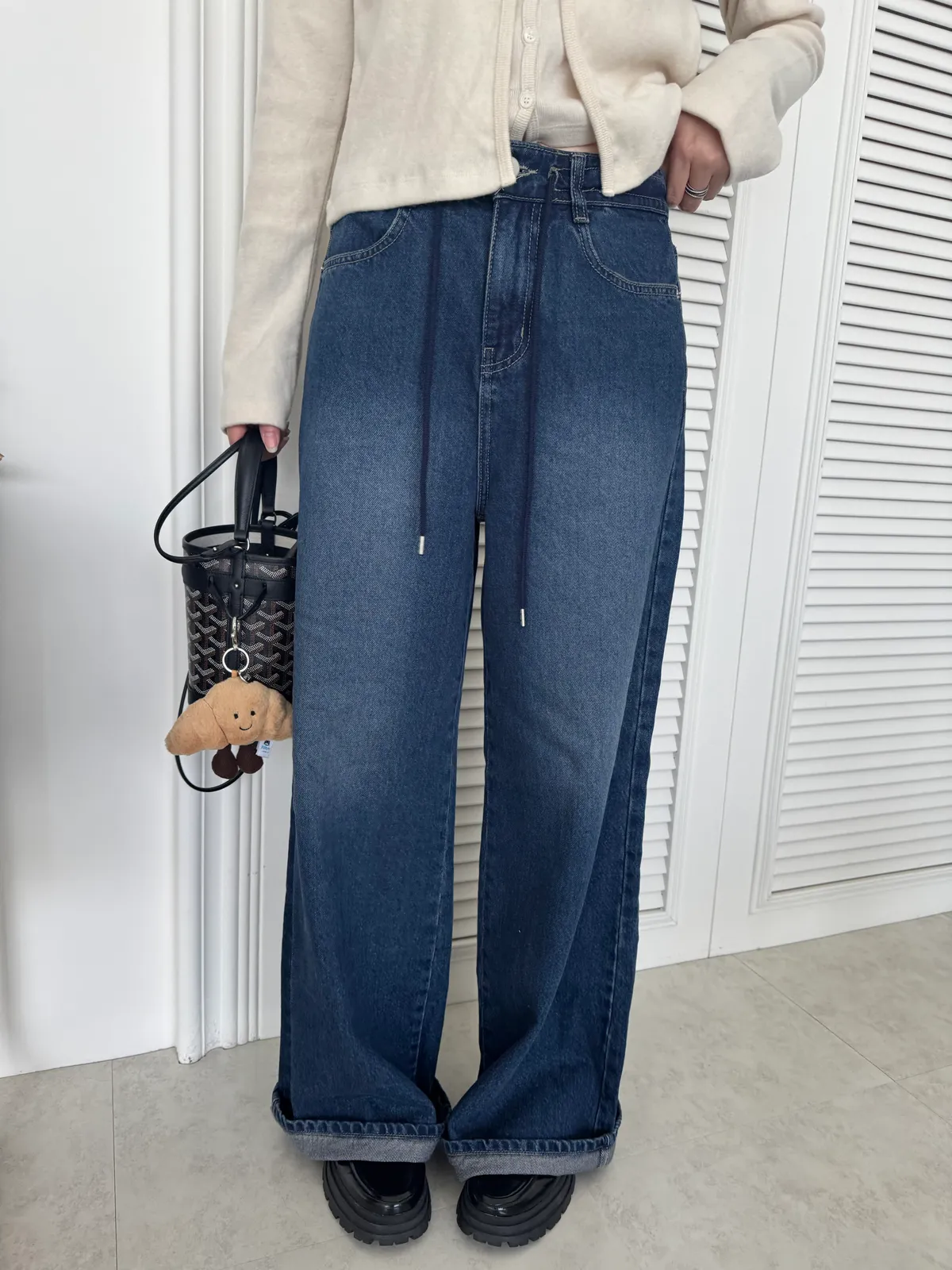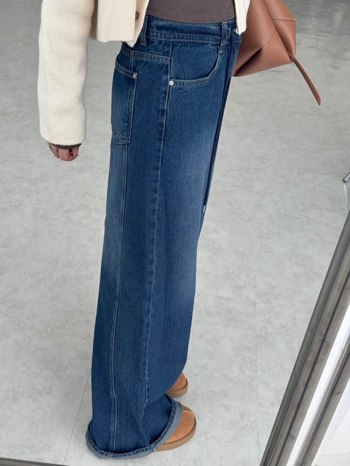 韓國冬天的牛仔褲顏色都偏深