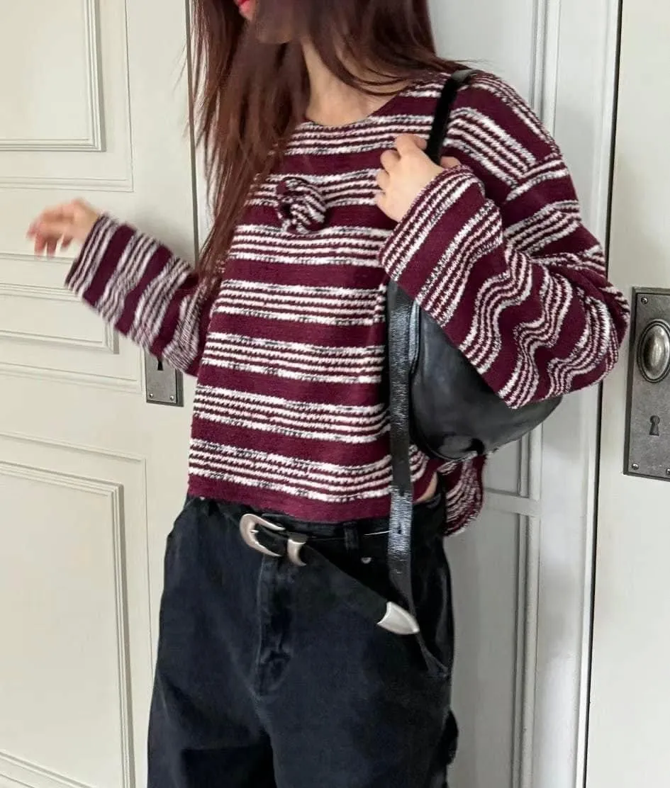 G01玫瑰花條紋針織