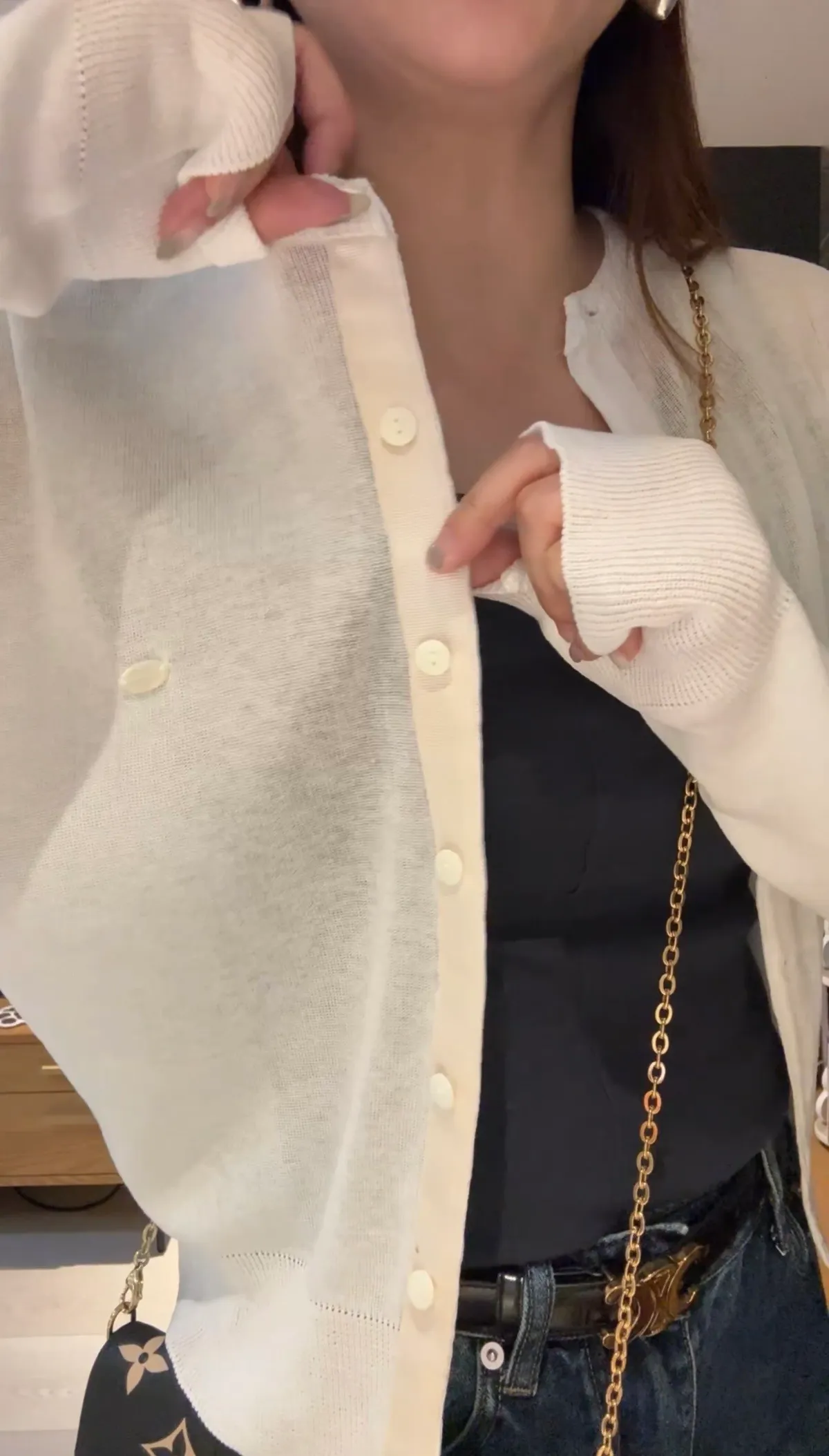 MA22排釦透紗罩衫