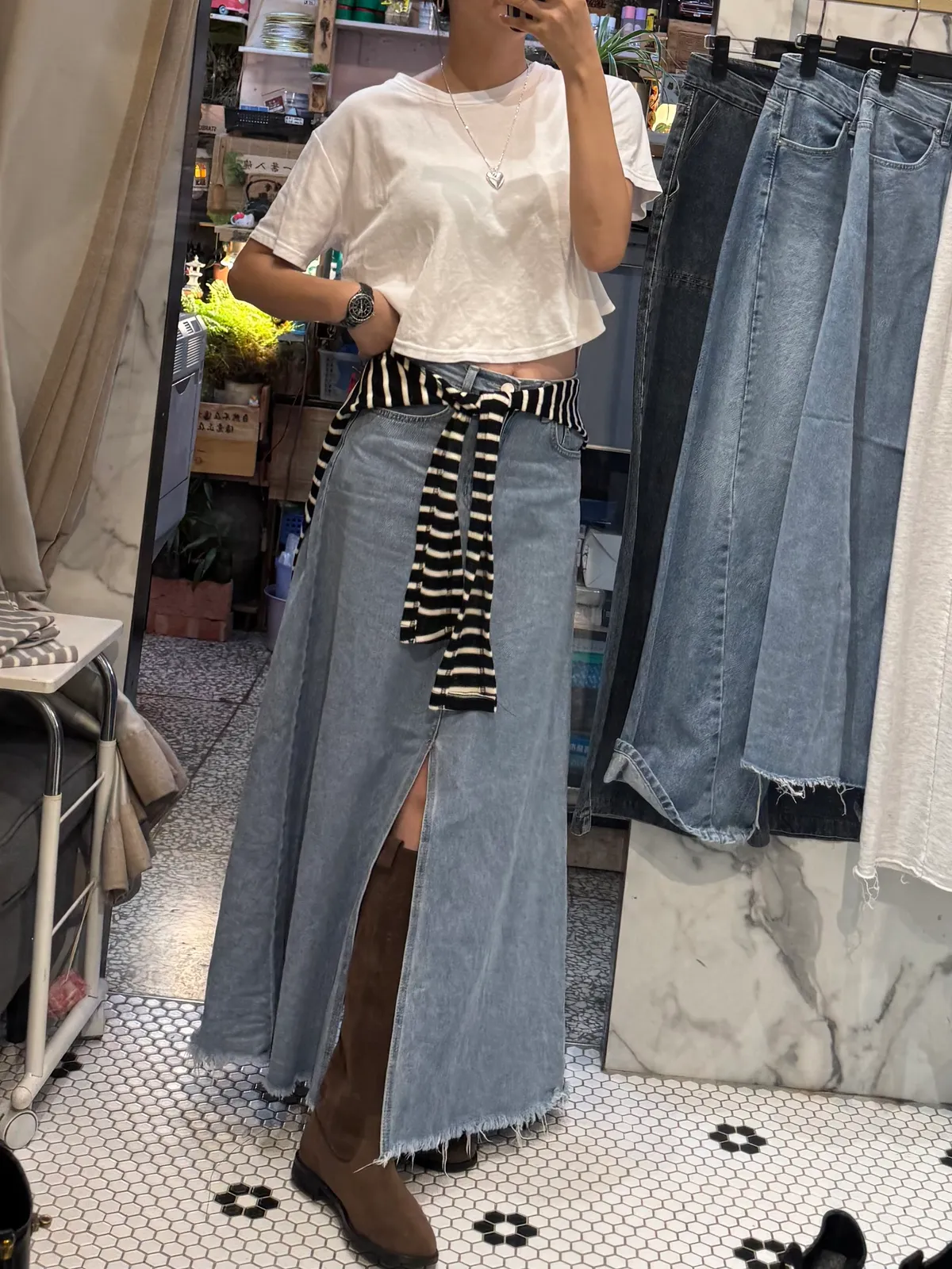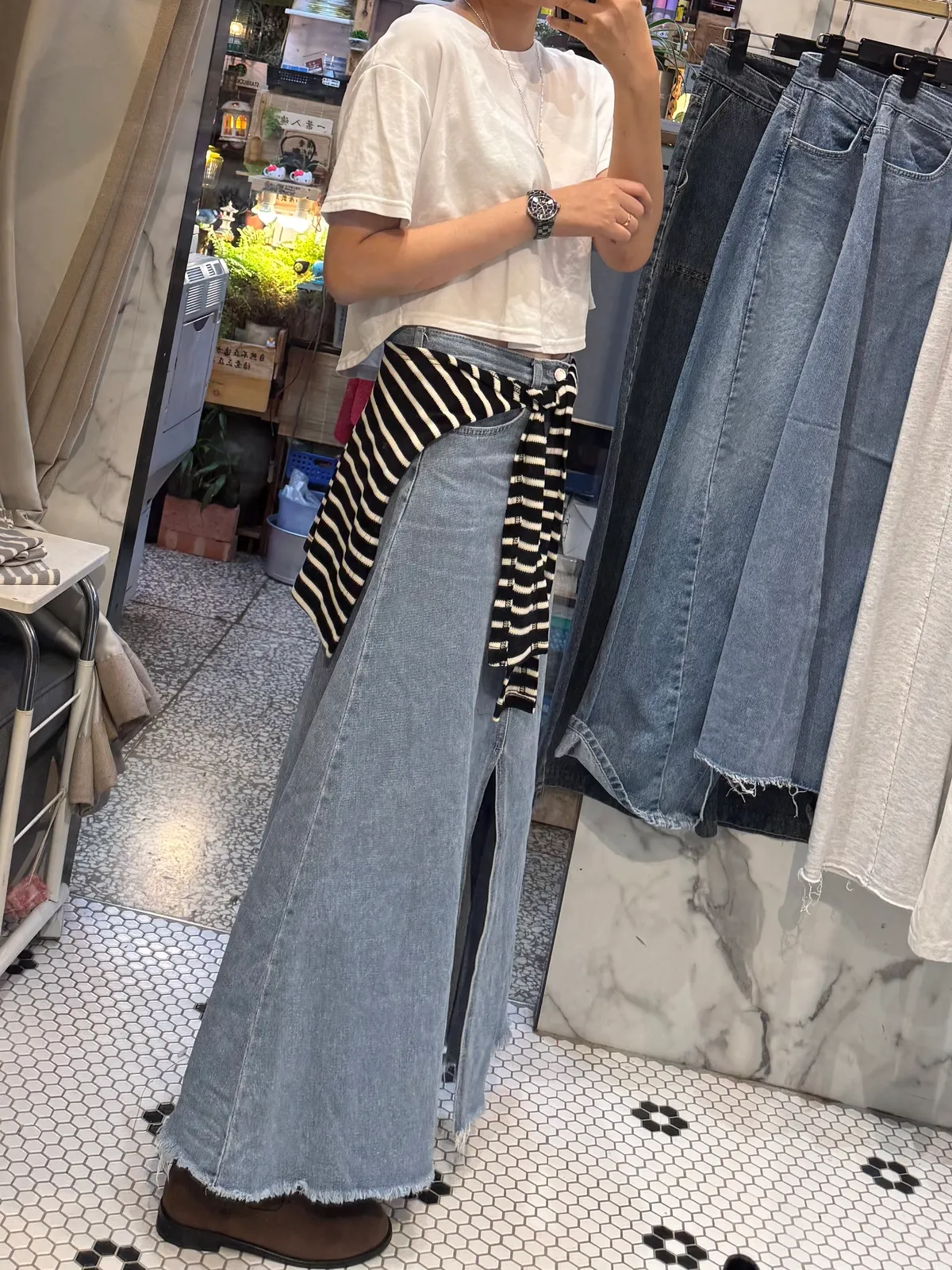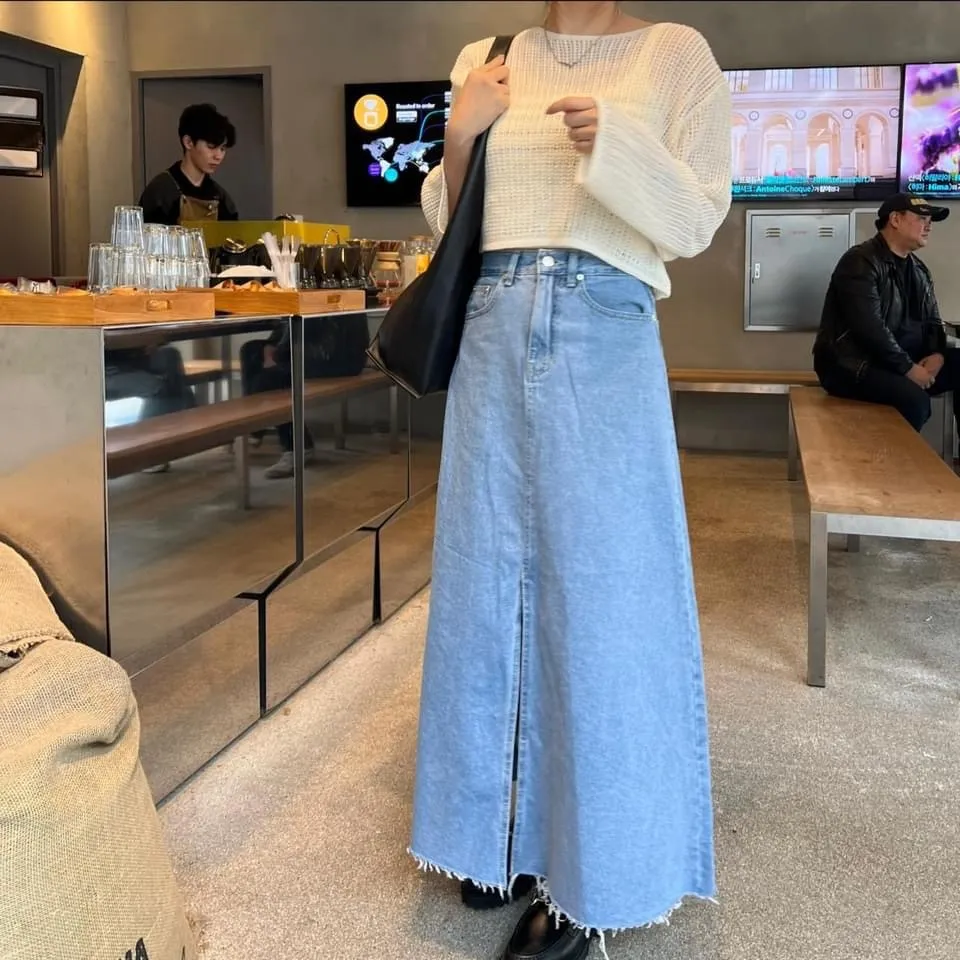 MR16 顯瘦前開衩牛仔裙