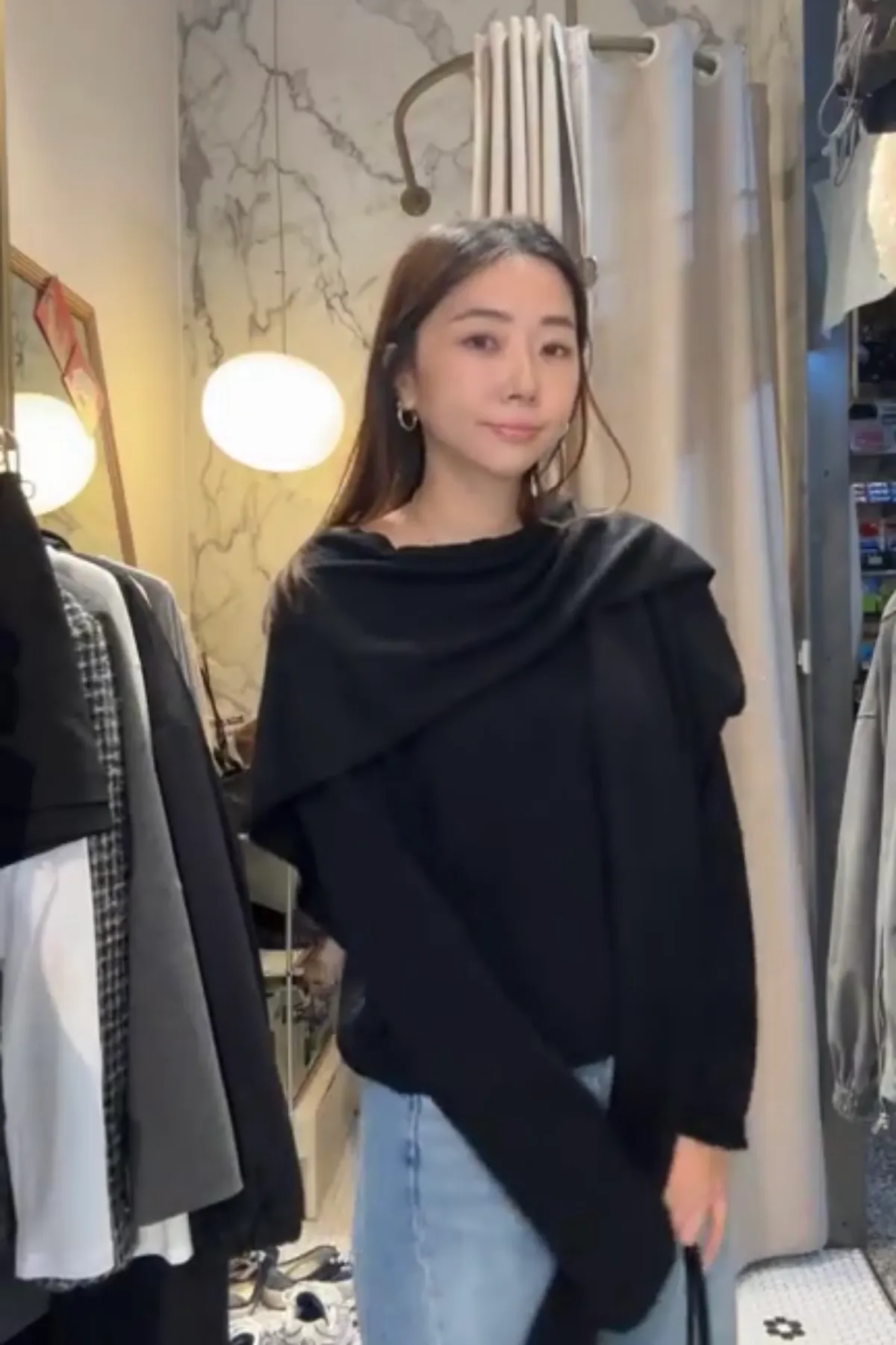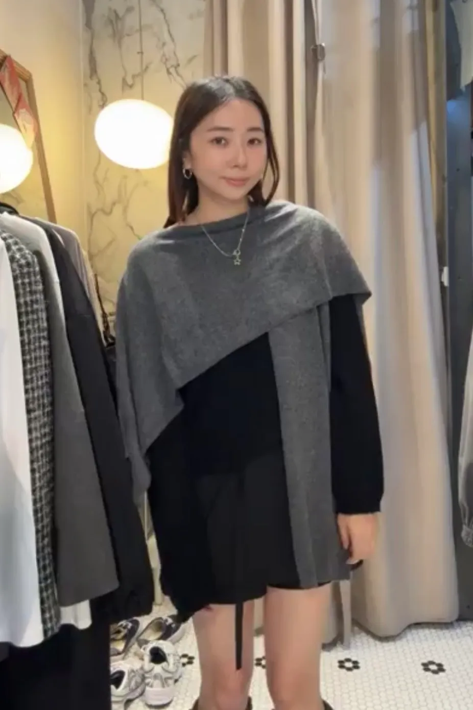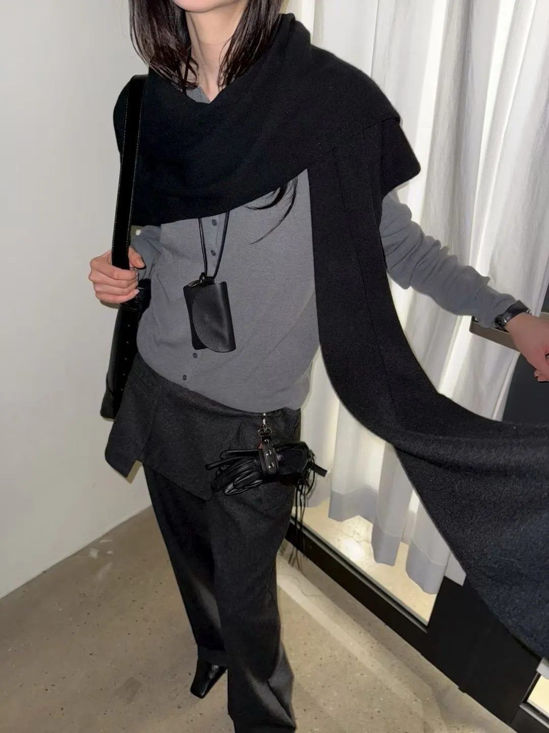 披肩有附上扣子,穿戴時不容易掉落唷