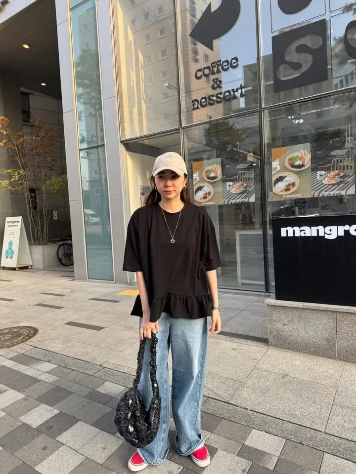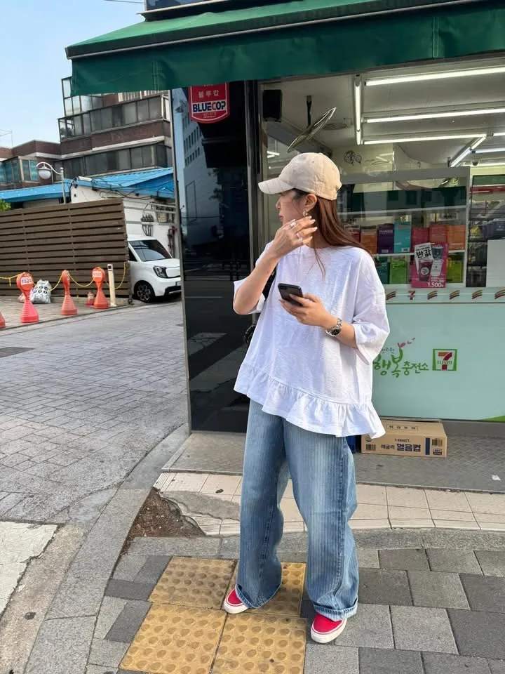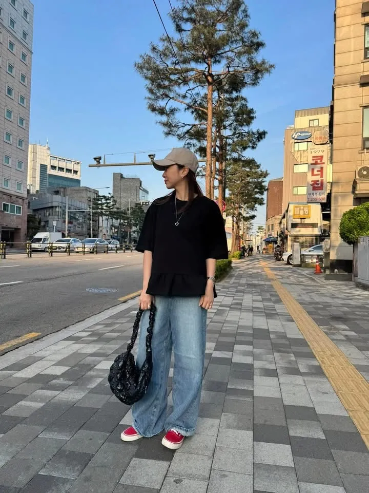 下身搭配直筒褲