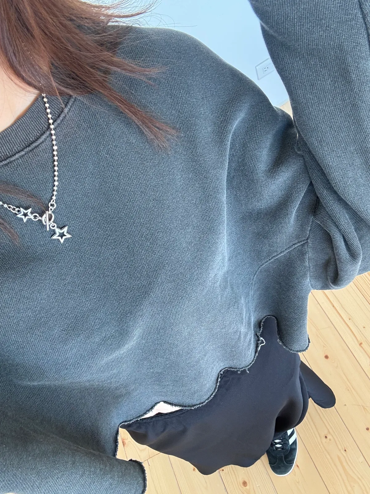 梅格大推薦的無刷毛寬身短衛衣 穿起來版型顯瘦,顯得腿好長 美式復古風格的水洗面料 特別喜歡手袖羅紋收邊設計 穿搭上很方便 單邊袖口還有著水洗的小標籤 加上腰身的部分帶有簡單的車線 是一件日常又帶有細節亮點的上衣 兩個顏色都好好看,有客人已經包色處理囉