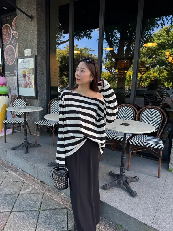 S12寬身露肩條紋T